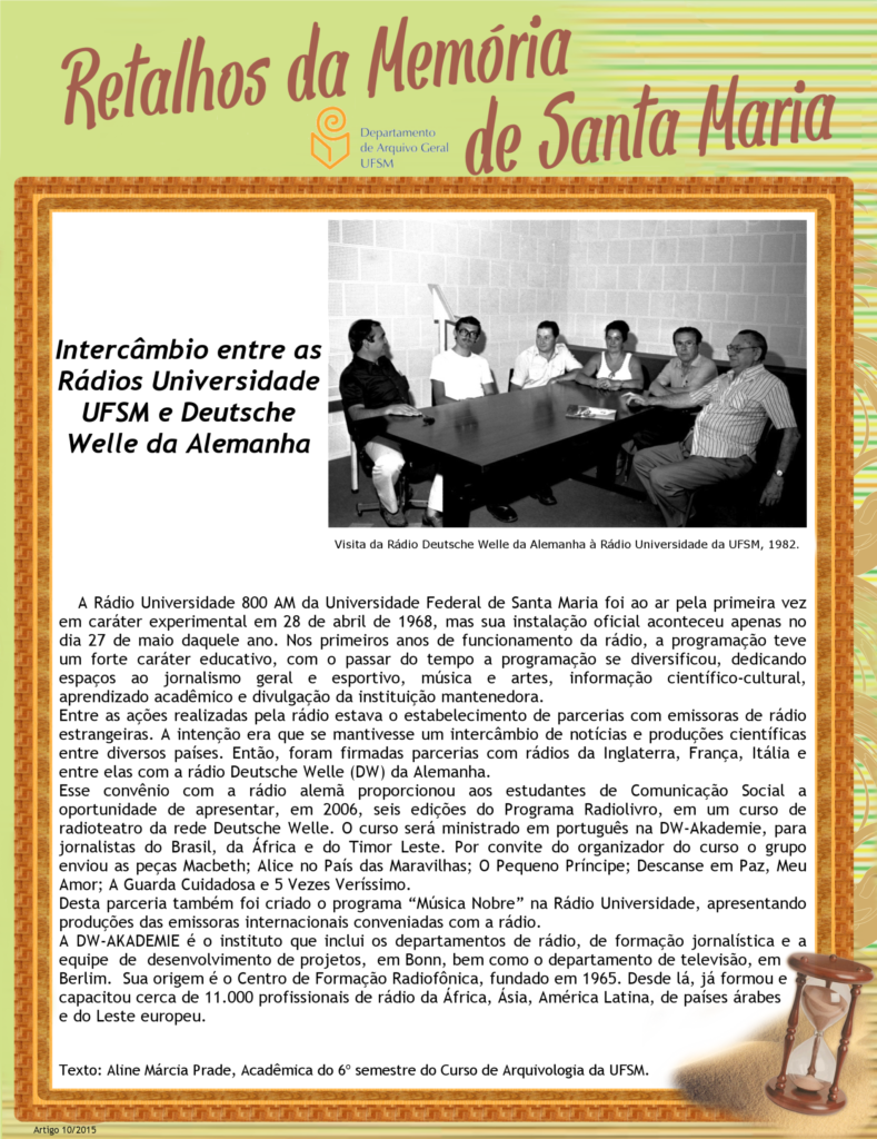 Projeto Retalhos da Memória de Santa Maria – artigo 010 Intercâmbio entre as Rádios Universidade UFSM e Deutsche Welle da Alemanha