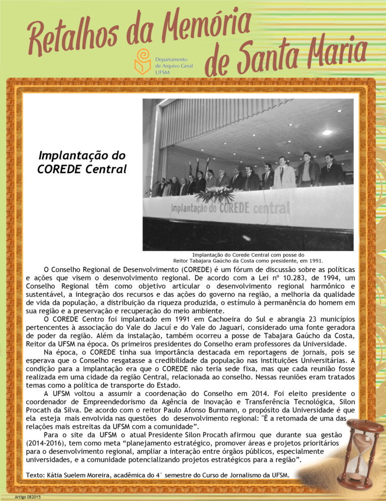Projeto Retalhos da Memória de Santa Maria – artigo 008 Implantação do COREDE Central
