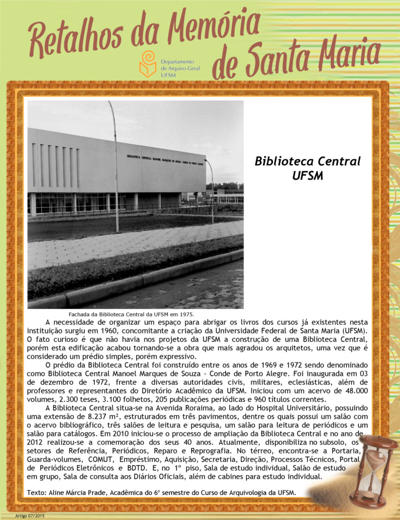 Projeto Retalhos da Memória de Santa Maria – artigo 007 Biblioteca Central UFSM