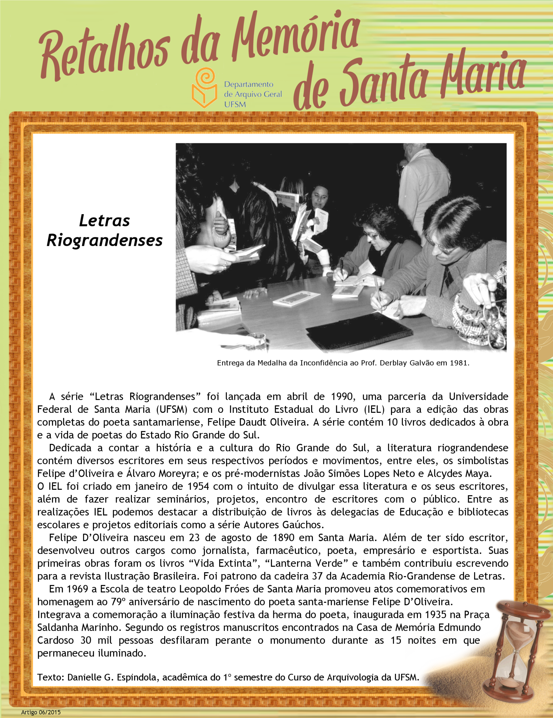 Projeto Retalhos da Memória de Santa Maria – artigo 006 Letras Riograndenses