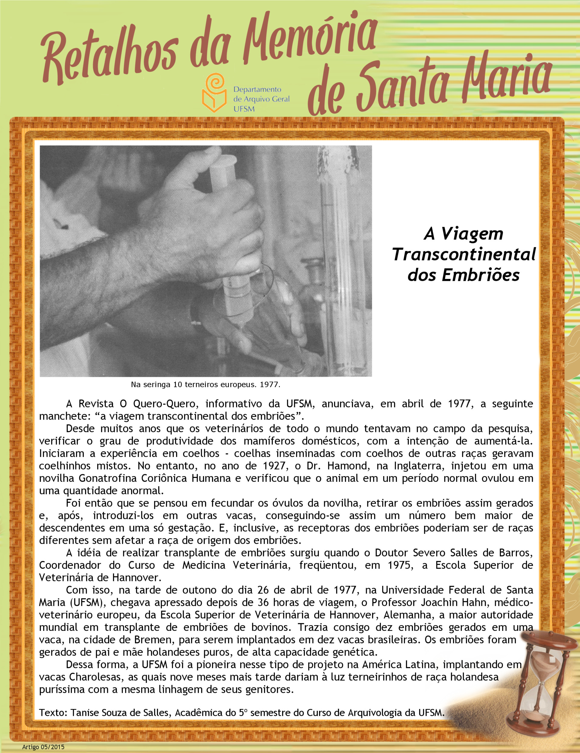 Projeto Retalhos da Memória de Santa Maria – artigo 005 A Viagem Transcontinental dos Embriões