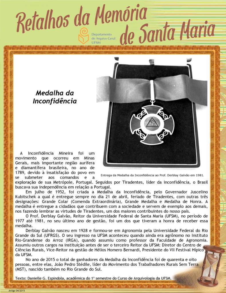 Projeto Retalhos da Memória de Santa Maria – artigo 004 Medalha da Inconfidência