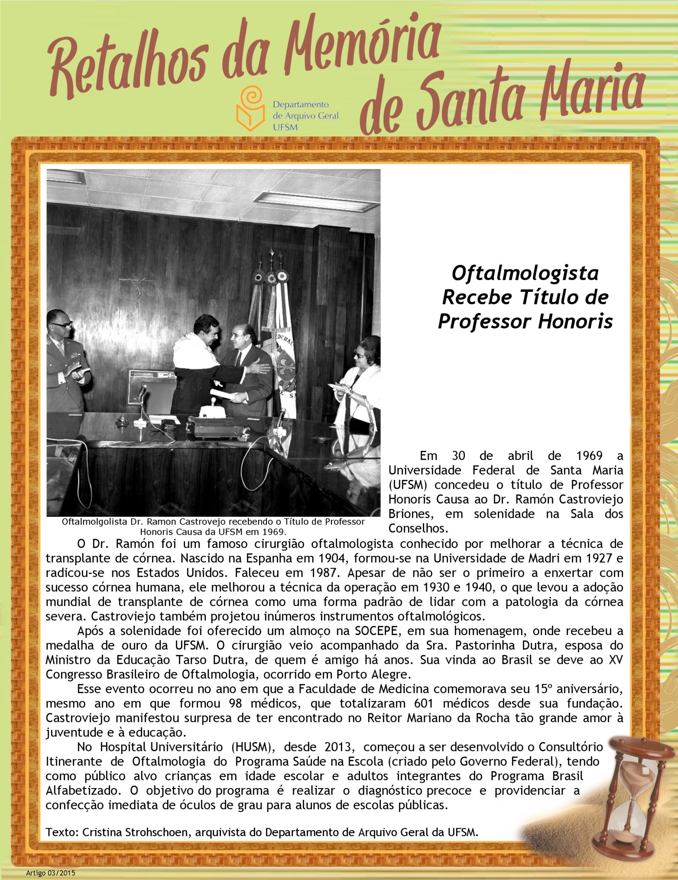Projeto Retalhos da Memória de Santa Maria – artigo 003 Oftalmologista Recebe Título de Professor Honoris Causa da UFSM