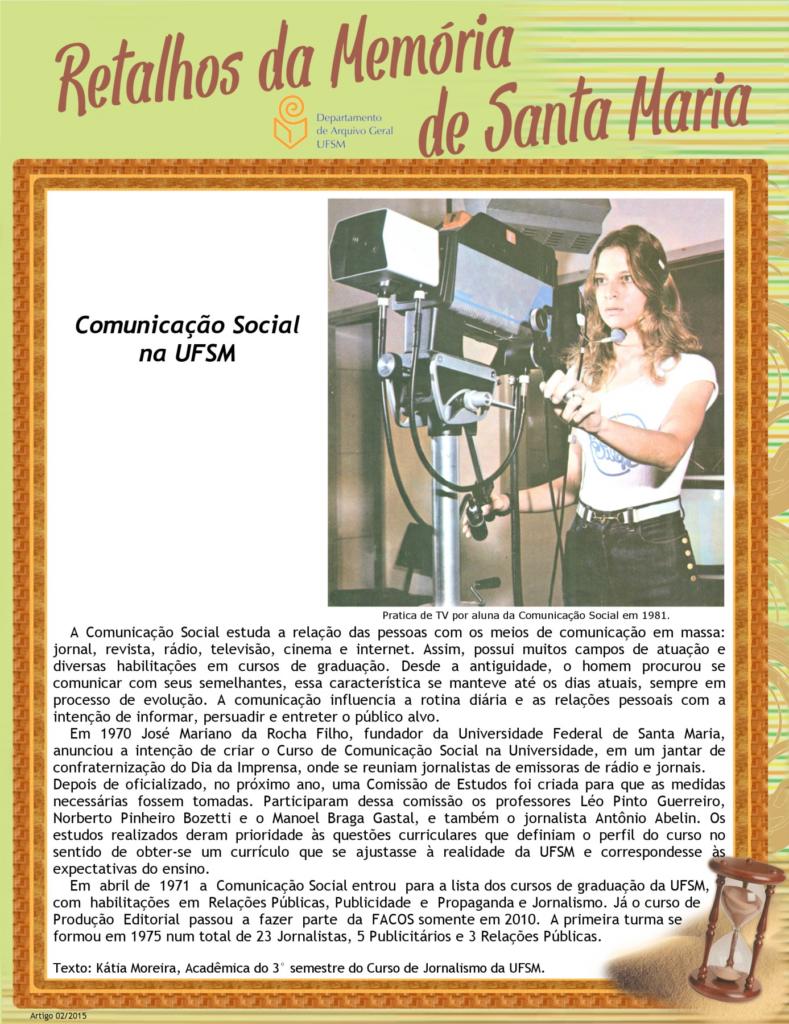 Projeto Retalhos da Memória de Santa Maria – artigo 002 Comunicação Social na UFSM