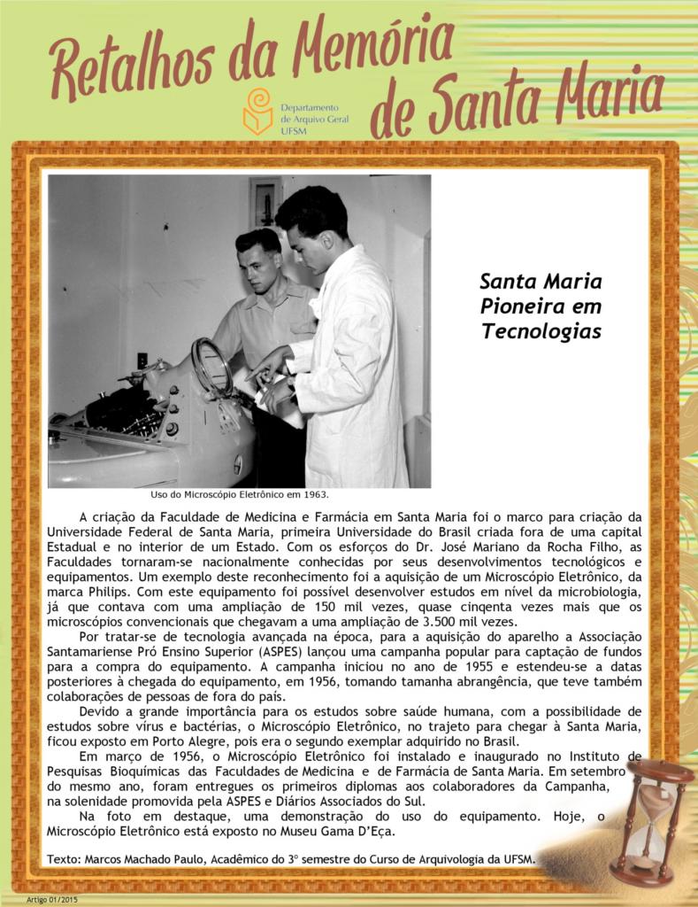 Projeto Retalhos da Memória de Santa Maria – artigo 001 Santa Maria Pioneira em Tecnologias