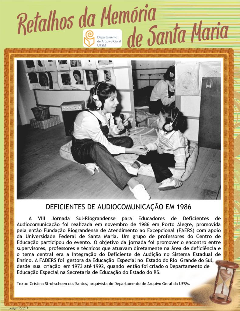 Projeto Retalhos da Memória de Santa Maria – artigo 248 Serviço de Atendimento Fonoaudiológico em 1984