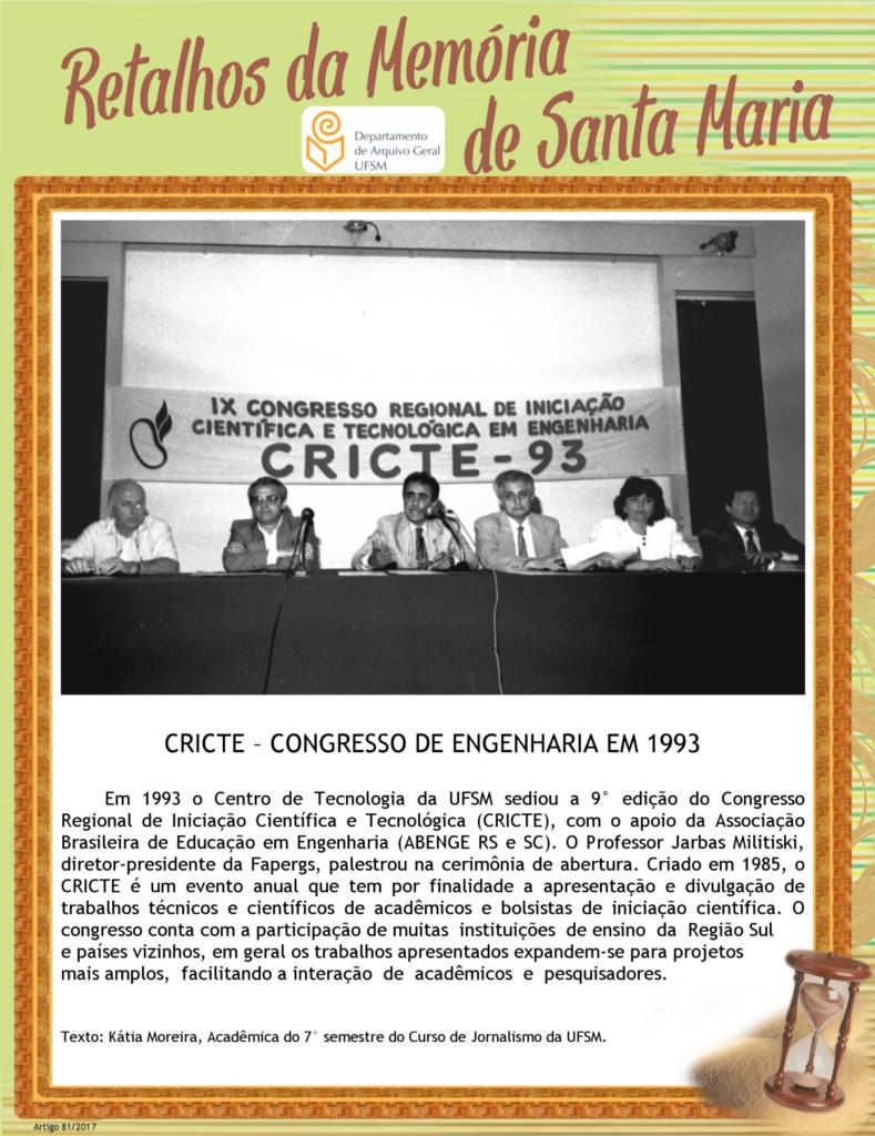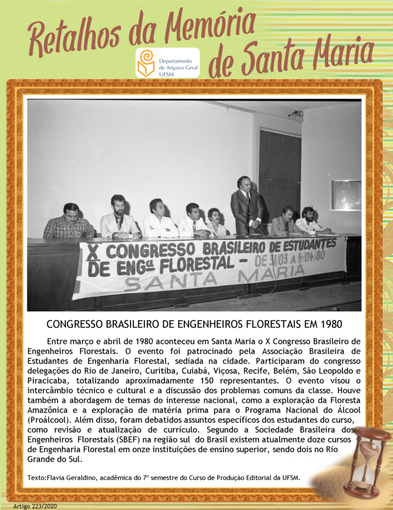 Entre março e abril de 1980 aconteceu em Santa Maria o X Congresso Brasileiro de Engenheiros Florestais. O evento foi patrocinado pela Associação Brasileira de Estudantes de Engenharia Florestal, sediada…