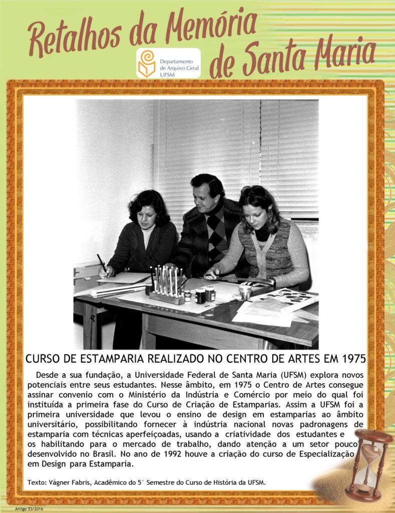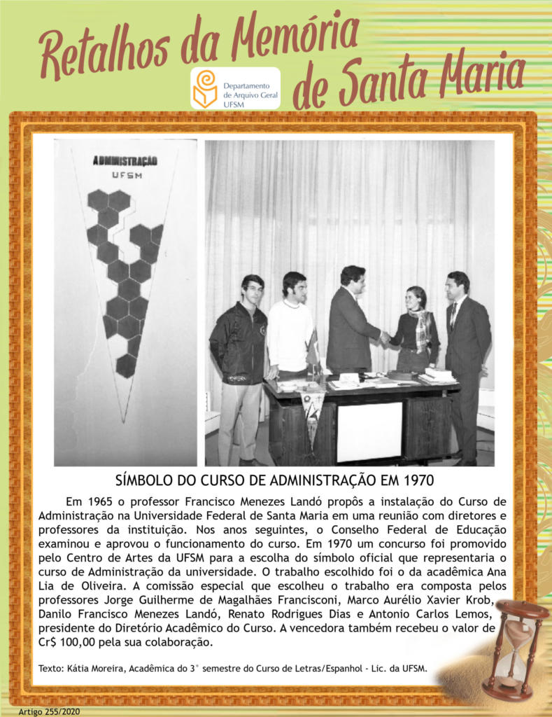 Projeto Retalhos da Memória de Santa Maria – artigo 255 Símbolo do Curso de Administração em 1970