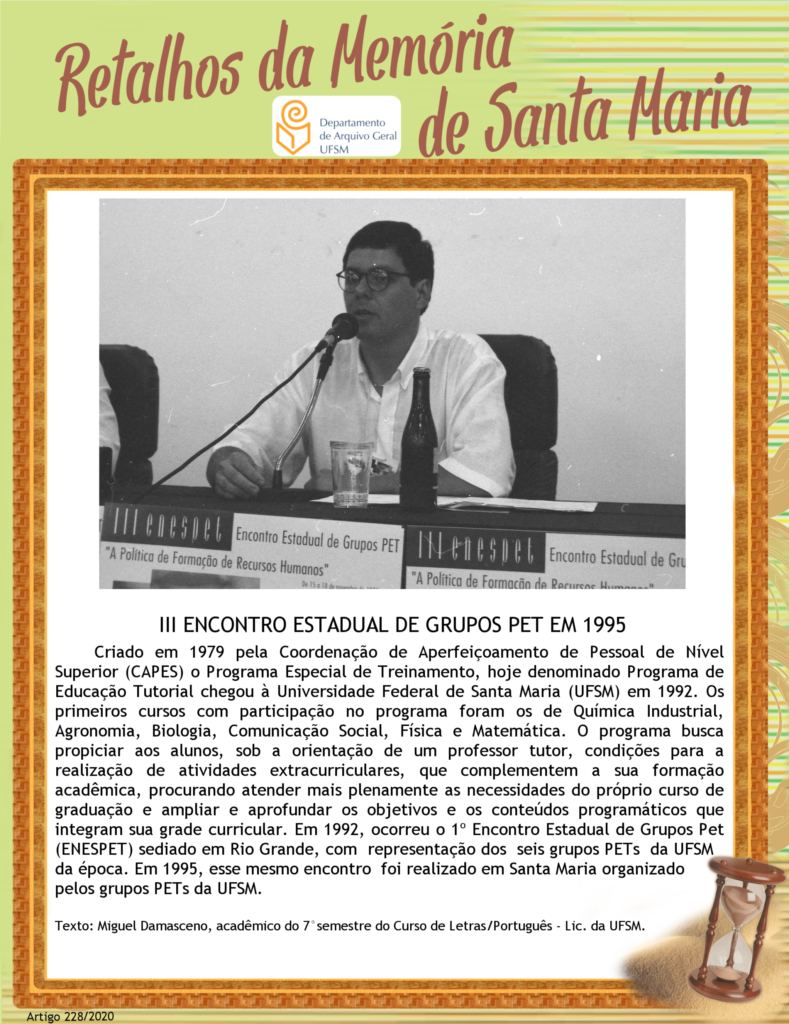 Projeto Retalhos da Memória de Santa Maria – artigo 228 III Encontro Estadual de Grupos PET em 1995
