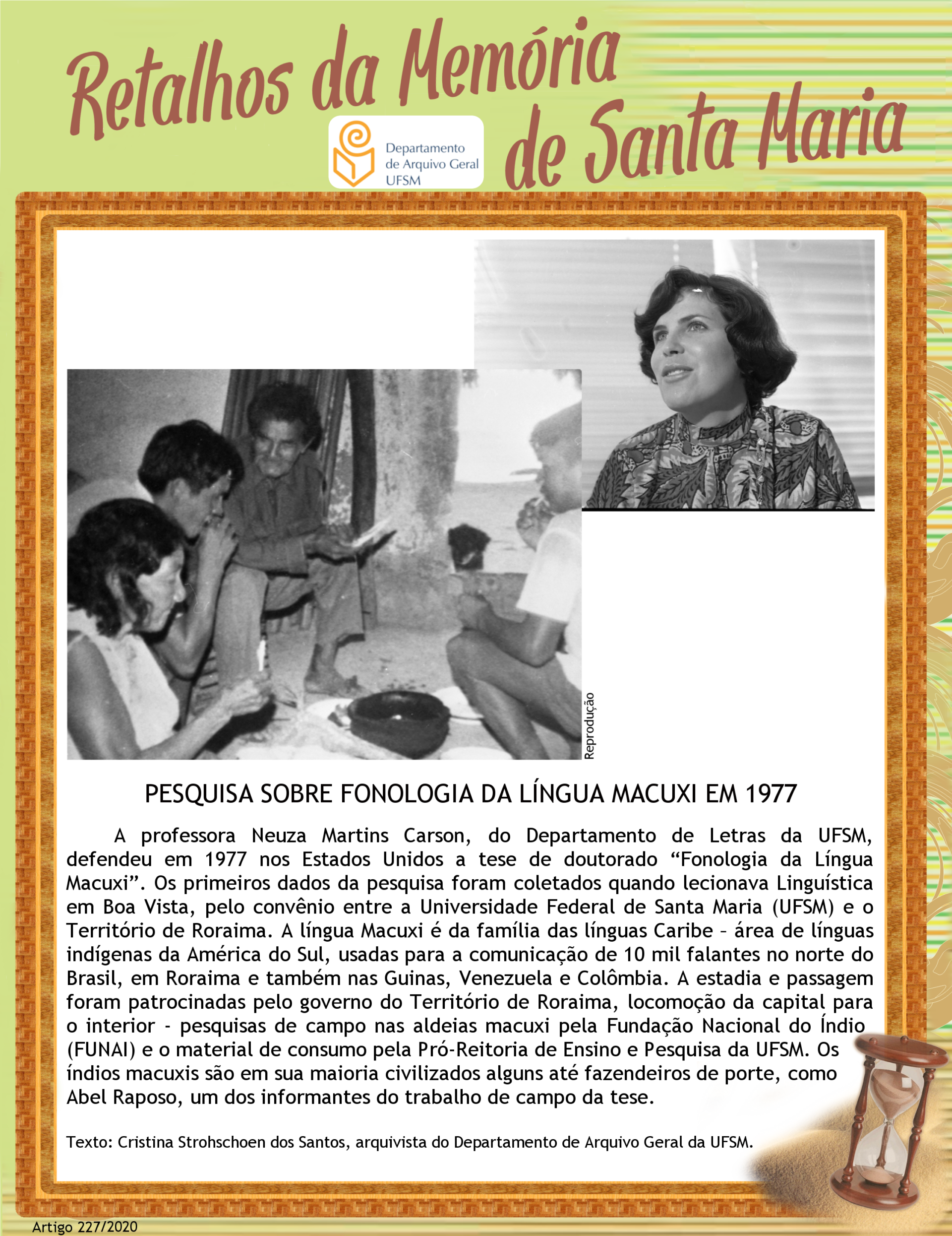 Projeto Retalhos da Memória de Santa Maria – artigo 227 Pesquisa sobre Fonologia da Língua Macuxi em 1977