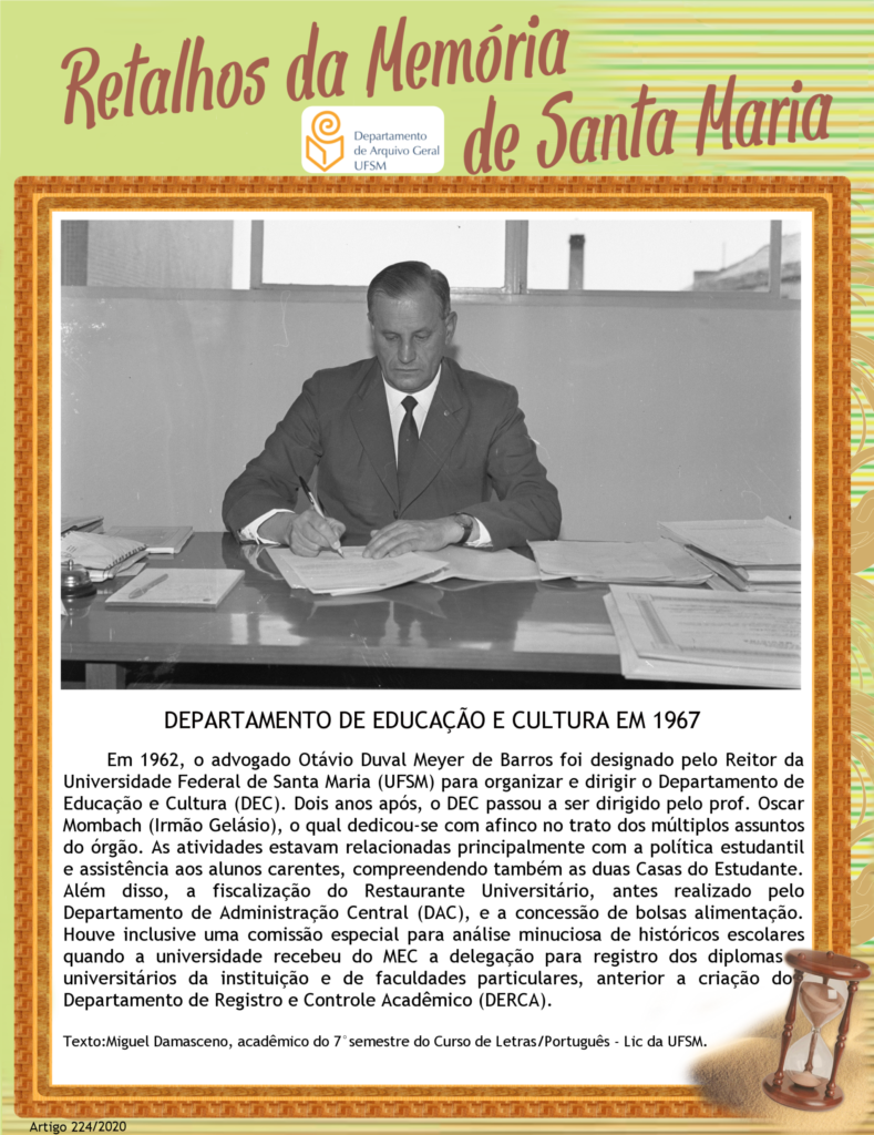 Projeto Retalhos da Memória de Santa Maria – artigo 224 Departamento de Educação e Cultura em 1967
