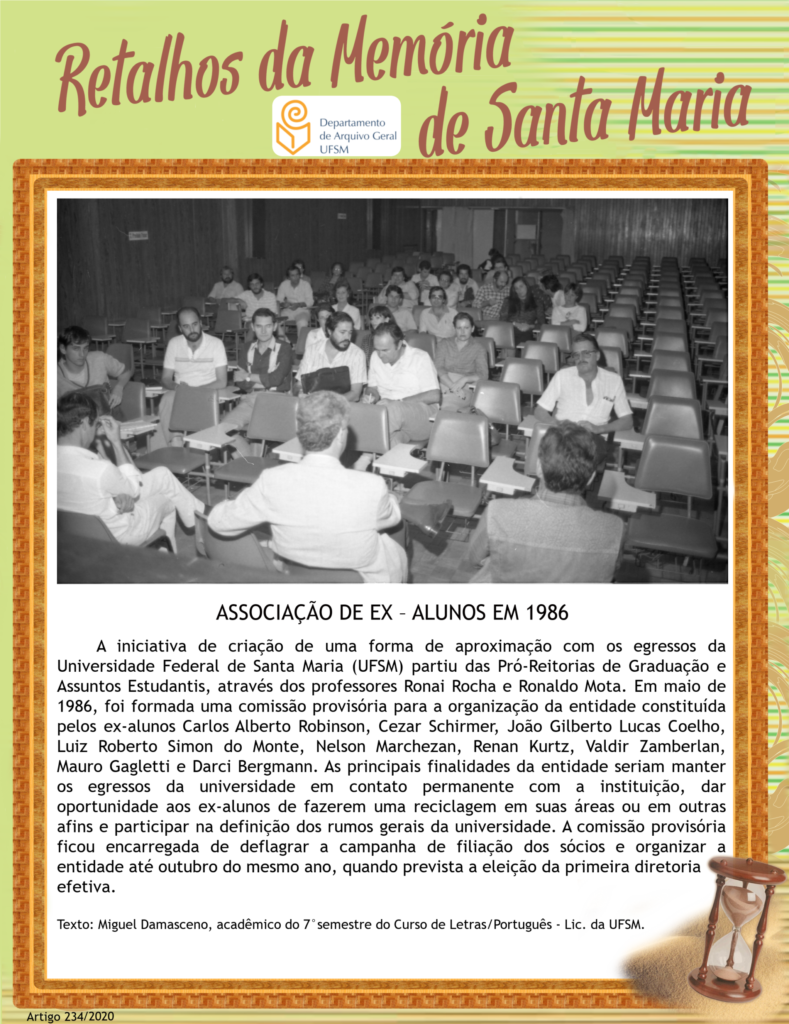 Projeto Retalhos da Memória de Santa Maria – artigo 234 Associação de Ex – alunos em 1986