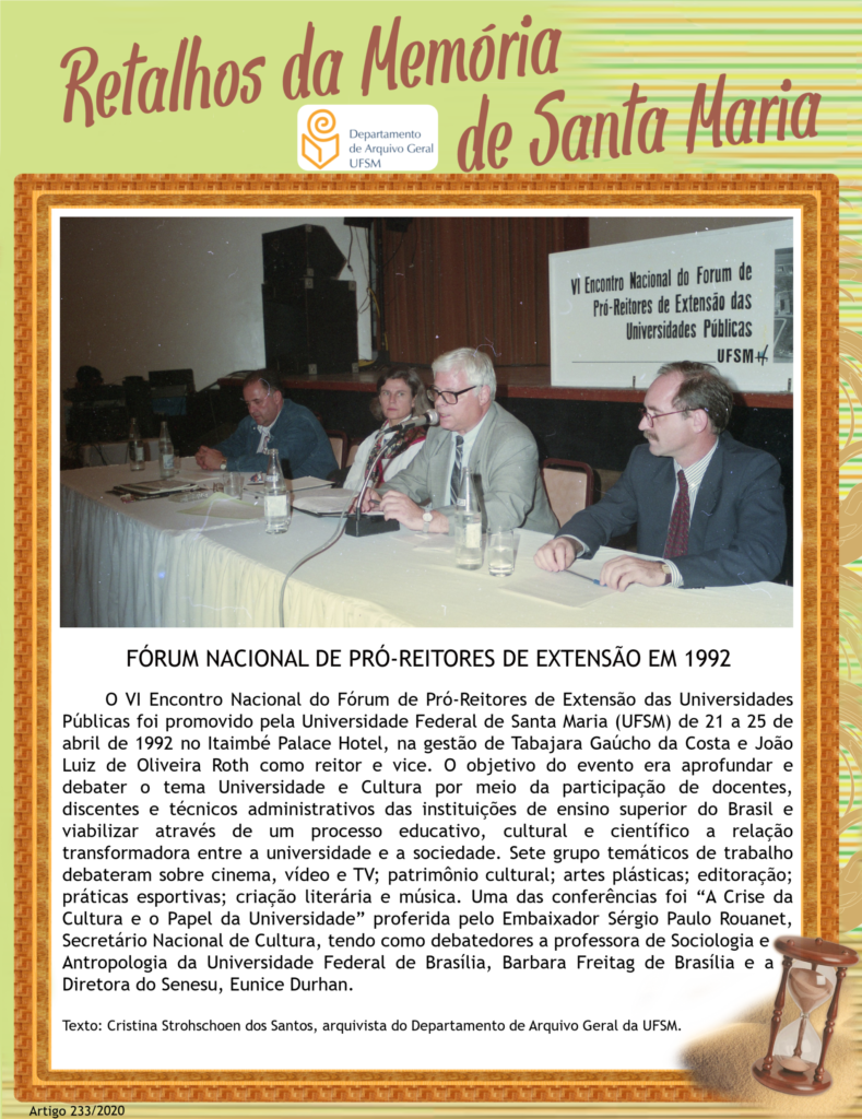 Projeto Retalhos da Memória de Santa Maria – artigo 233 Fórum Nacional de Pró-Reitores de Extensão em 1992