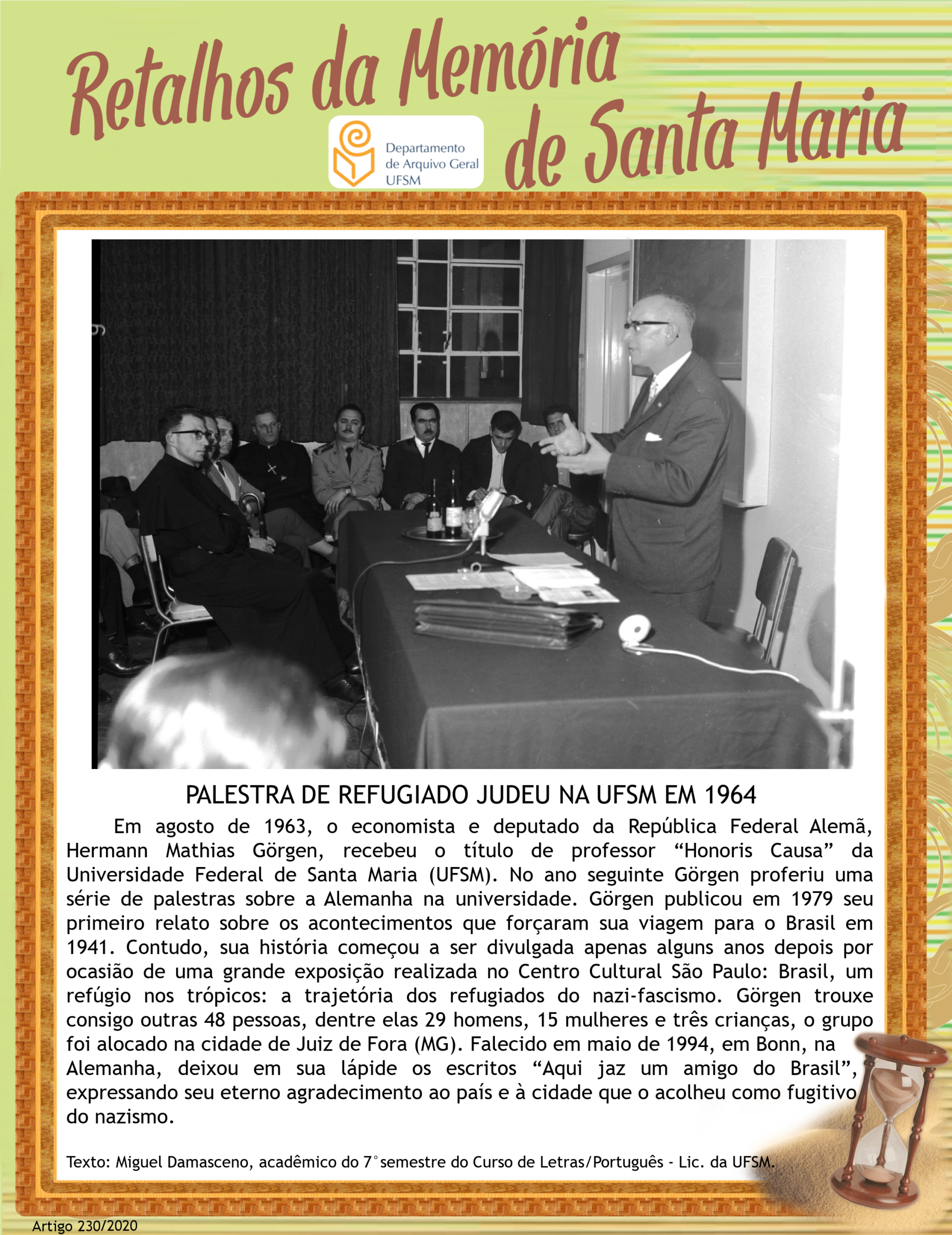 Projeto Retalhos da Memória de Santa Maria – artigo 230 Palestra de Refugiado Judeu na UFSM em 1964