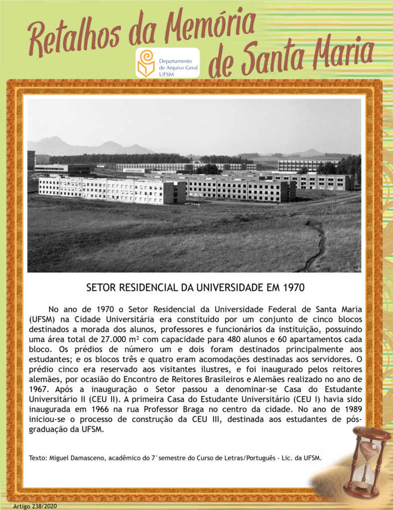 Projeto Retalhos da Memória de Santa Maria – artigo 238 Setor Residencial da Universidade em 1970