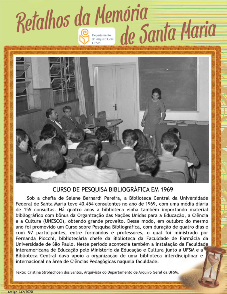 Projeto Retalhos da Memória de Santa Maria – artigo 242 Curso de Pesquisa Bibliográfica em 1969