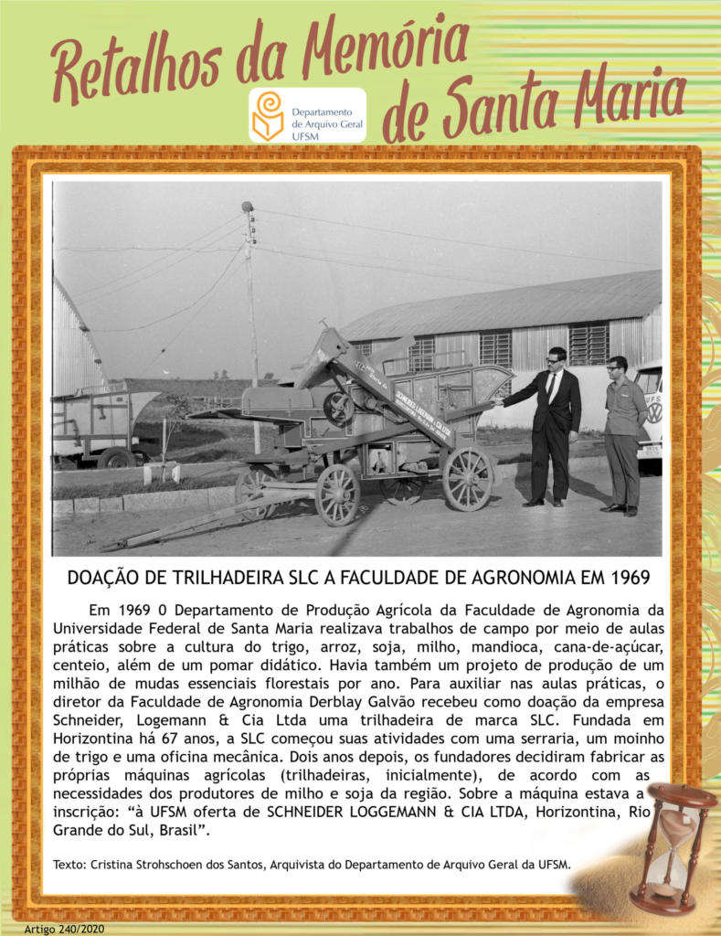 Projeto Retalhos da Memória de Santa Maria – artigo 240 Doação de Trilhadeira SLC a Faculdade de Agronomia em 1969