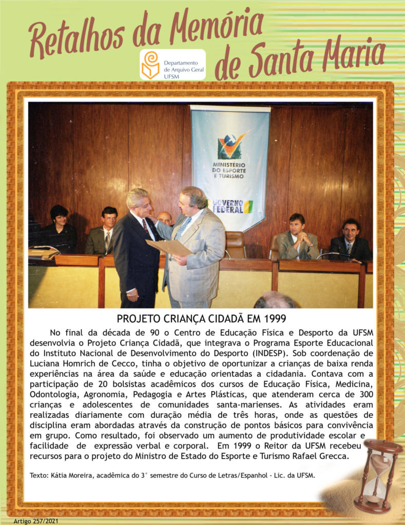 Projeto Retalhos da Memória de Santa Maria – artigo 257 Projeto Criança Cidadã em 1999