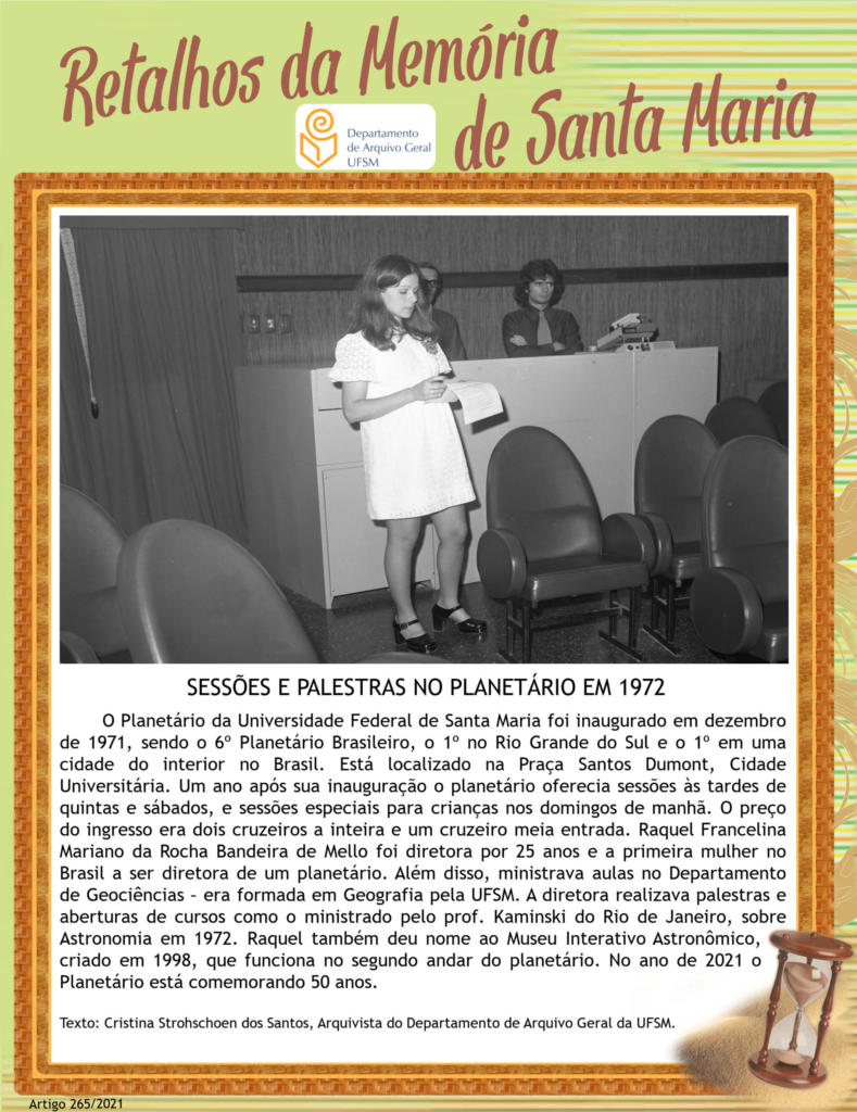 Projeto Retalhos da Memória de Santa Maria – artigo 265 Sessões e Palestras no Planetário em 1972