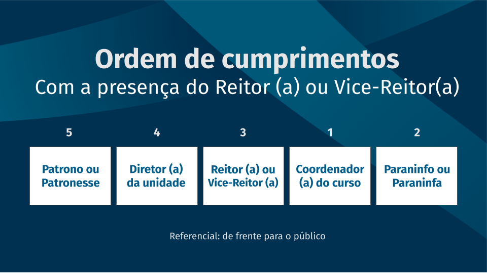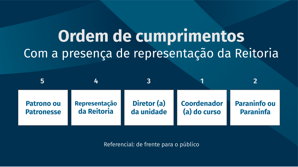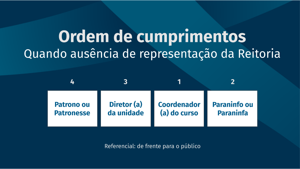 Abaixo, está descrito a ordem de cumprimentos que o formando (a) deve seguir ao ser chamado.