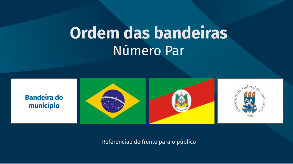 Ordem das bandeiras, quando número ímpar: Rio Grande do Sul, Brasil e UFSM