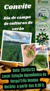 Os pesquisadores e estudantes envolvidos nos projetos de pesquisa conduzidos na estação Agronômica da Uergs em Cachoeira do Sul convidam todos a participar do tradicional dia de campo de culturas de verão:
