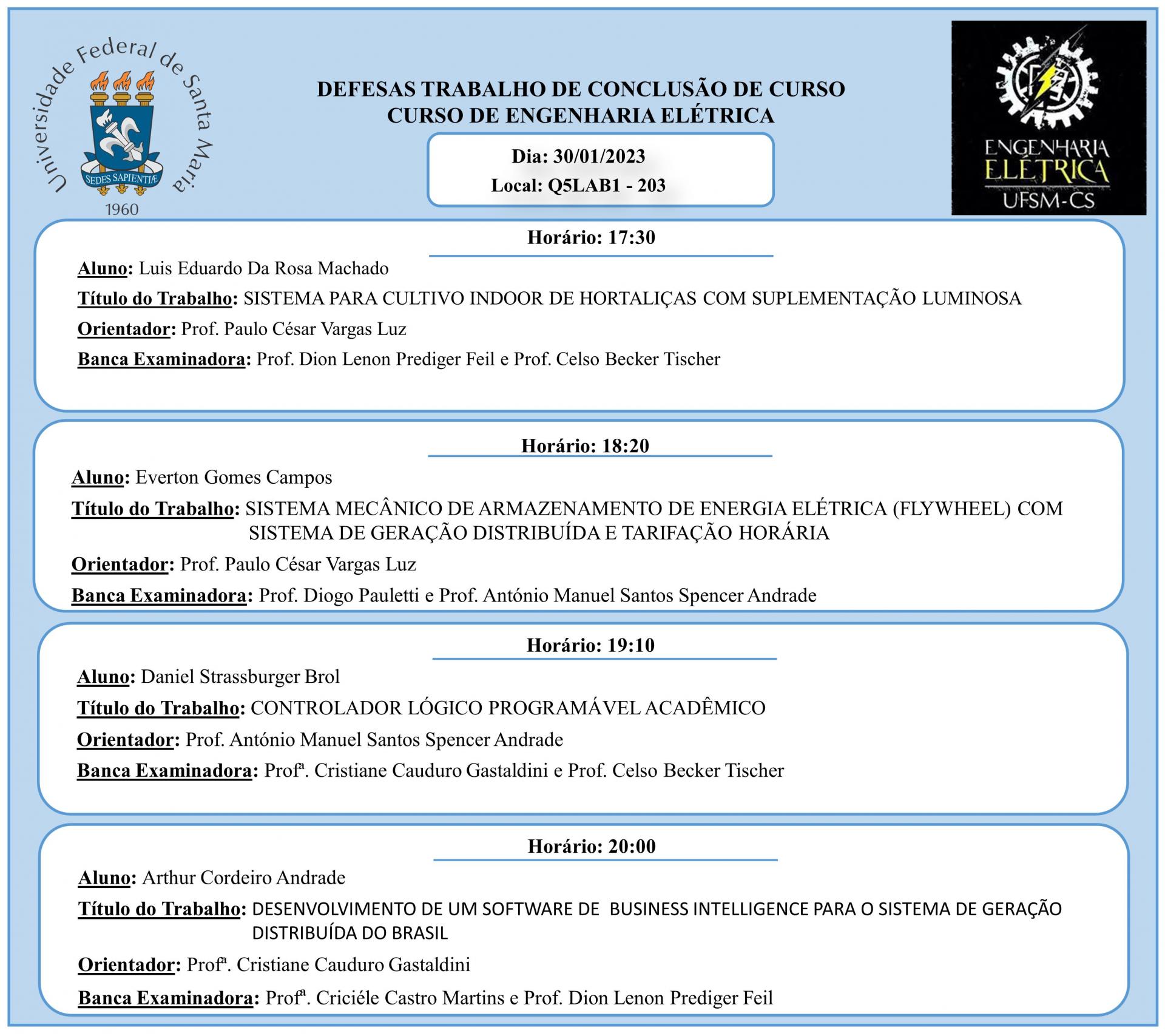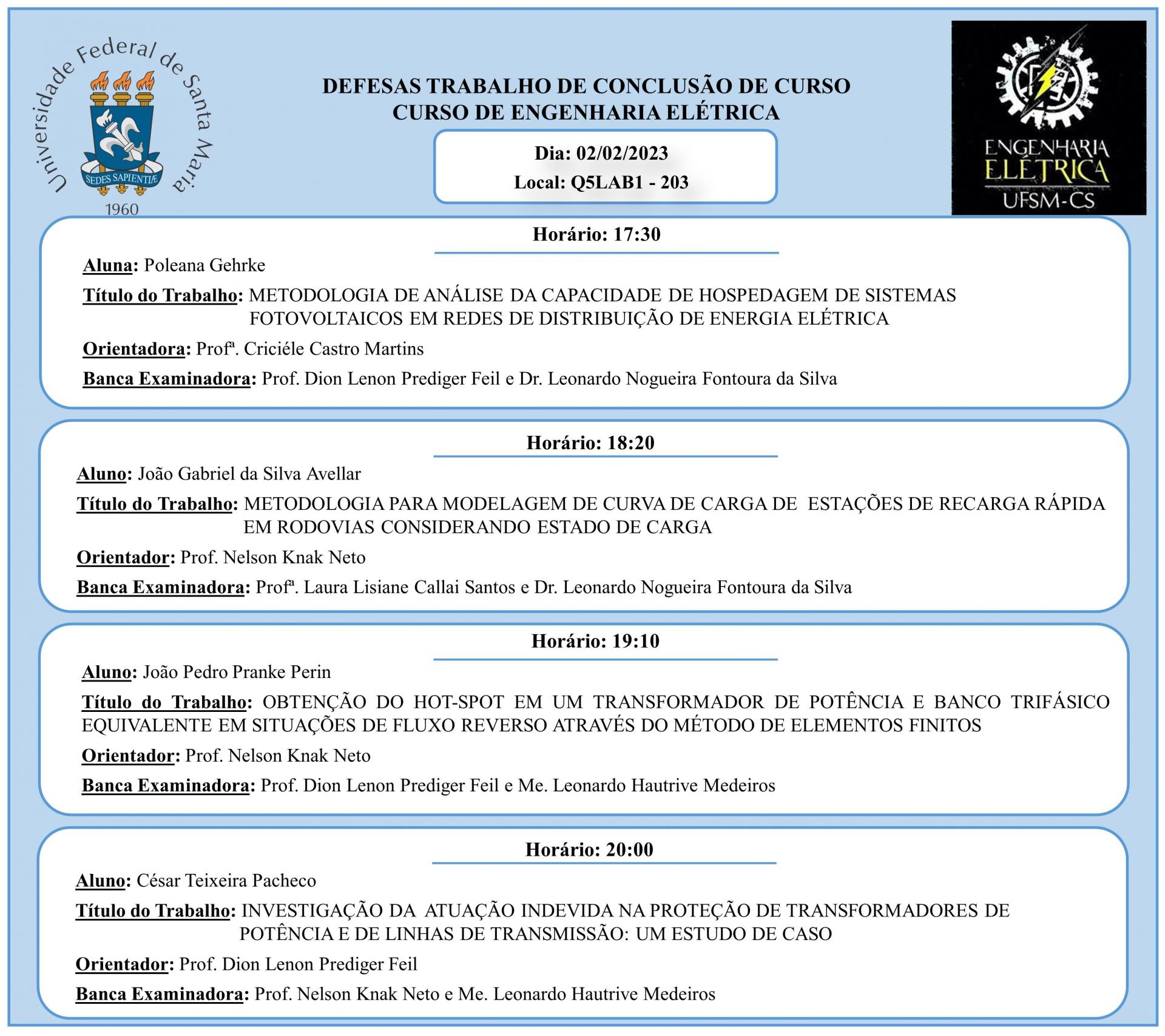 Informações das defesas de TCC I e TCC II do Curso de Engenharia Elétrica – CS.