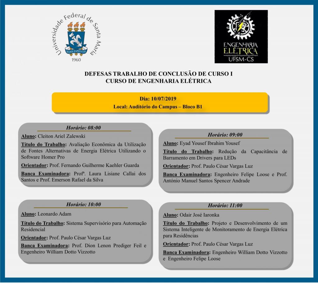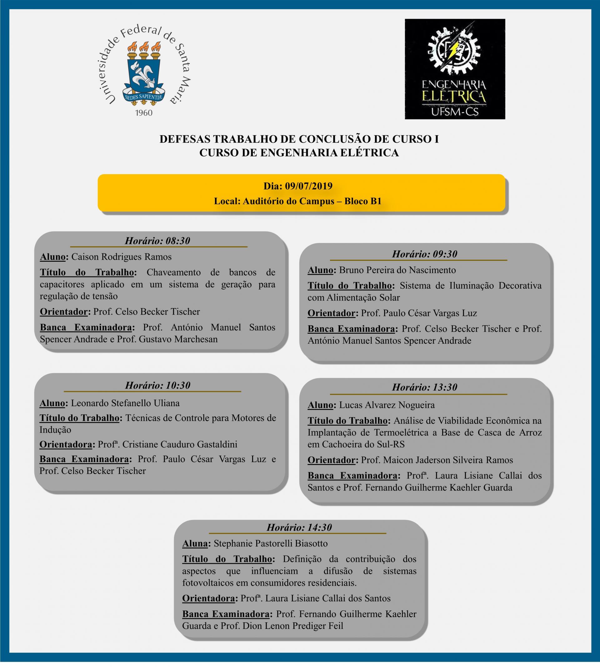 Defesas de TCC I e TCC II do 1º semestre de 2019