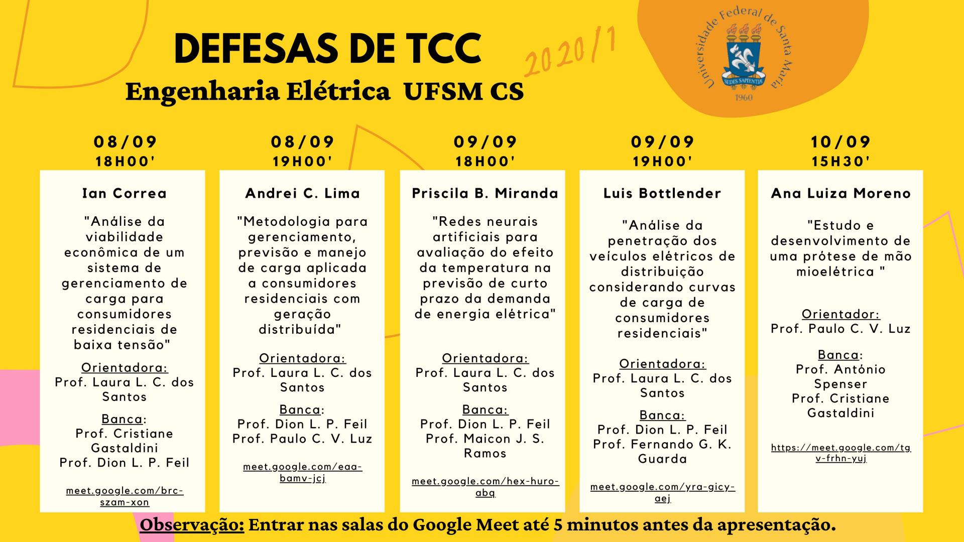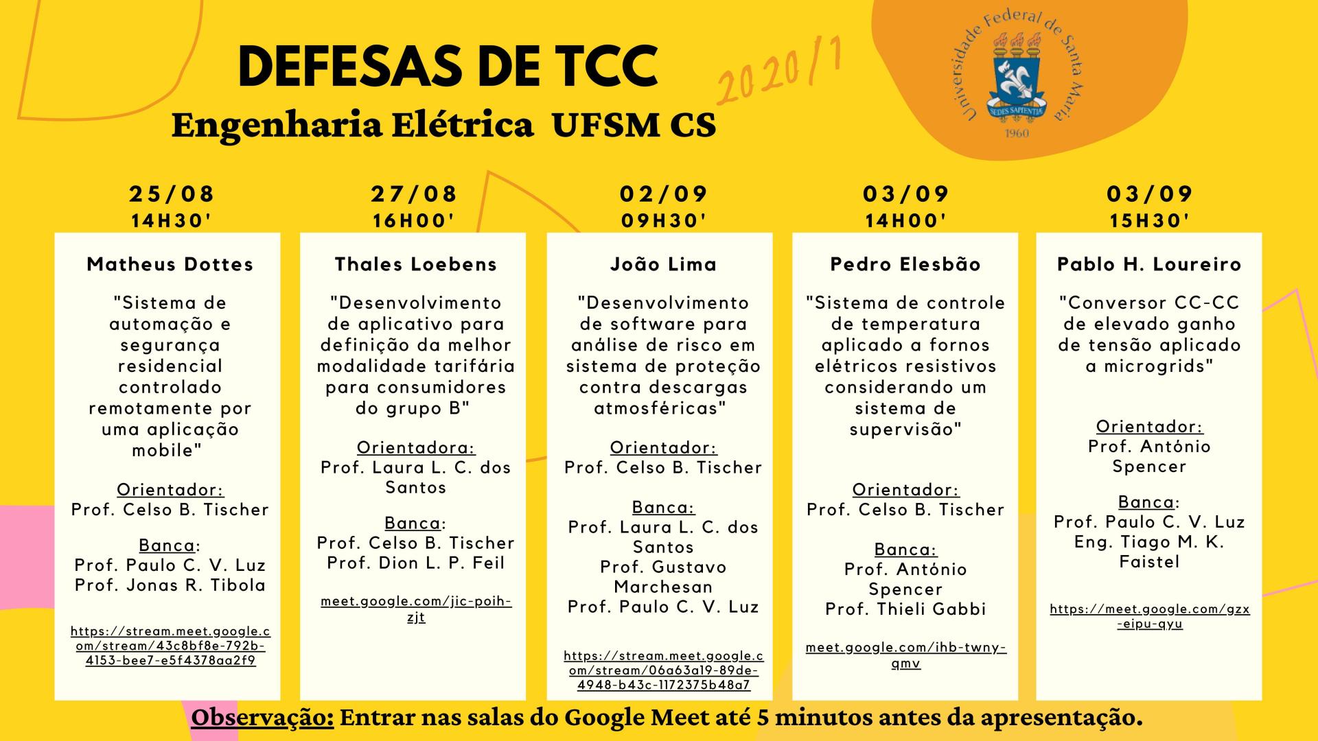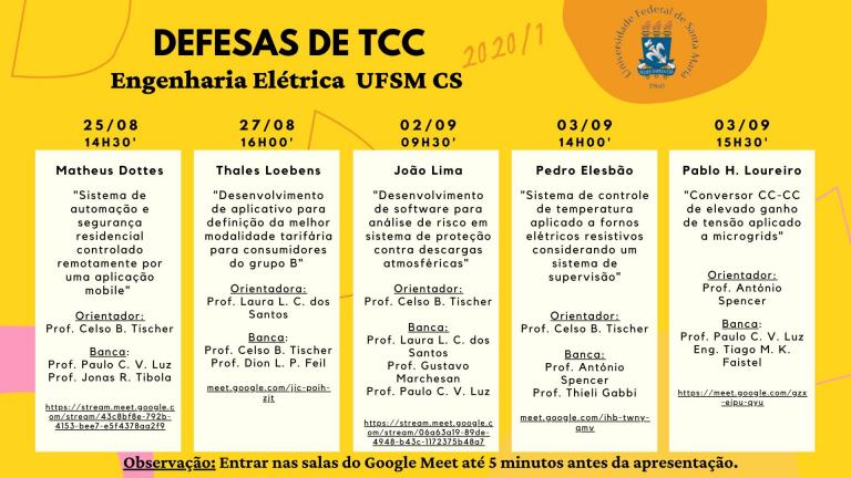 Defesas de TCC I e TCC II do 1º semestre de 2020
