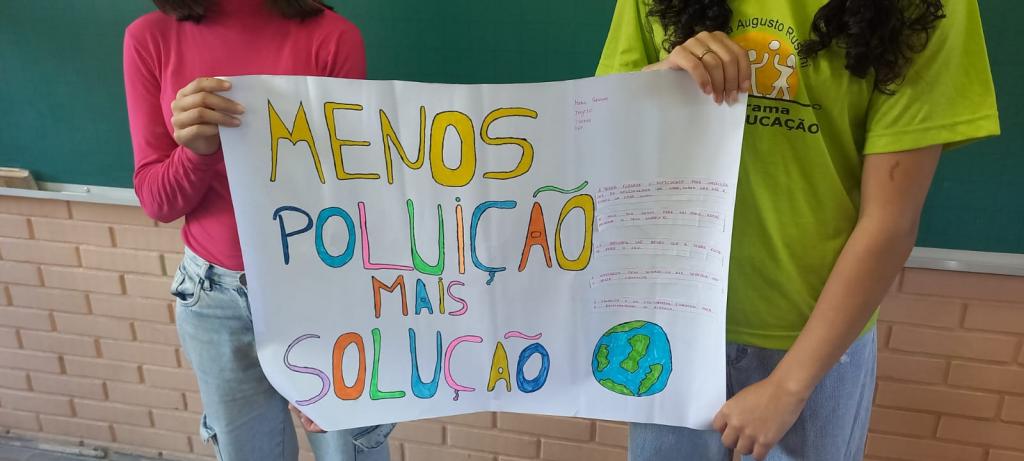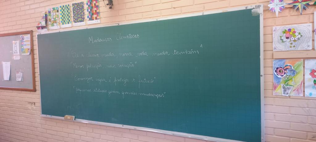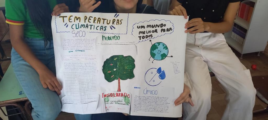 Elisandra Fraga Pinheiro, desenvolvendo seu estágio curricular supervisionado 3, com a turma de 7⁰ ano da Escola Estadual de Educação Básica Augusto Ruschi. A produção de cartazes e maquete com o tempo “Meu Território e o Clima: Uma análise de nosso bairro e de nossas ações para um futuro melhor”.