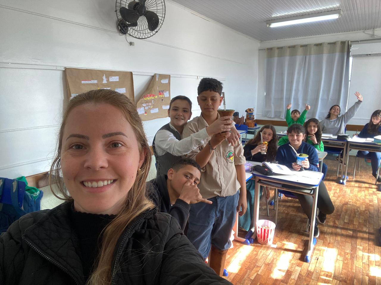 com a turma 62 do sexto ano, no município de Guaporé-RS.