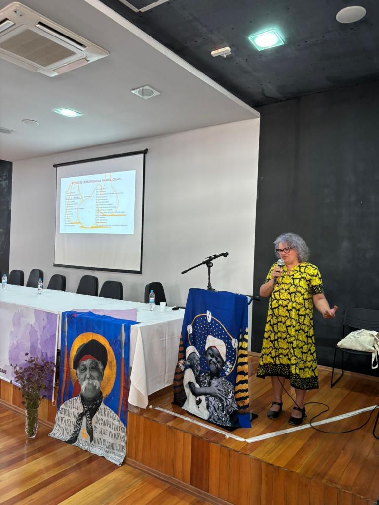 A professora Leonice Mourad apresentou a palestra “Conhecendo a Política Nacional de Desenvolvimento Sustentável dos Povos e Comunidades Tradicionais”, discutindo diretrizes, avanços e desafios dessa política que orienta ações de garantia de direitos, proteção territorial, reconhecimento identitário e fortalecimento sociocultural de povos e comunidades tradicionais no Brasil.