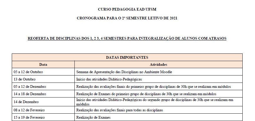 Estimados(as) alunos(as) do Curso de Pedagogia EaD: