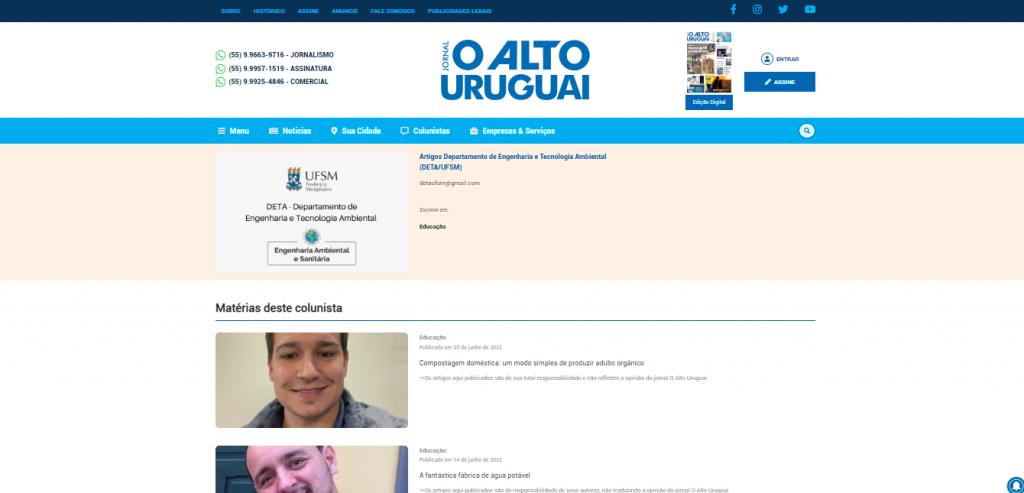 O jornal Alto Uruguai está publicando quinzenalmente os artigos escritos por professores do nosso departamento. Os temas são relacionados ao meio ambiente e ciência, assim em cada semana um professor é autor de um artigo com um assunto diferente.