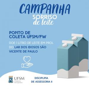 Participe da Campanha Sorriso de Leite, uma iniciativa promovida pelas acadêmicas de Relações Públicas Nathália Guimarães e Ana Beatriz Mesquita, que tem como objetivo arrecadar doações de leite para apoiar o Lar dos Idosos de nossa cidade.