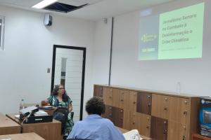 No dia 12, a professora do Departamento de Comunicação, Janaína Gomes, apresentou seu artigo “Jornalismo Sonoro no Combate à Desinformação e Crise Climática: ação de extensão ‘Verdade ou Mentira?’ da UFSM”, que conta com a colaboração das professoras Cláudia Herte de Moraes e Luciana Carvalho, e do professor Maicon Kroth.