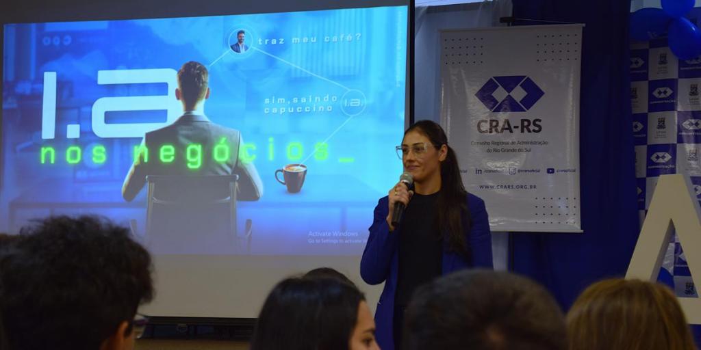 A palestra principal foi ministrada por Lucas Silveira, secretário da Câmara de Gestão em Tecnologia e Inovação (CETInova) do CRA-RS. Ele trouxe uma visão prática sobre a presença da Inteligência Artificial nas organizações, ressaltando que, embora a tecnologia ajude a otimizar tarefas, o poder criativo e a capacidade de inovação humana continuam insubstituíveis.