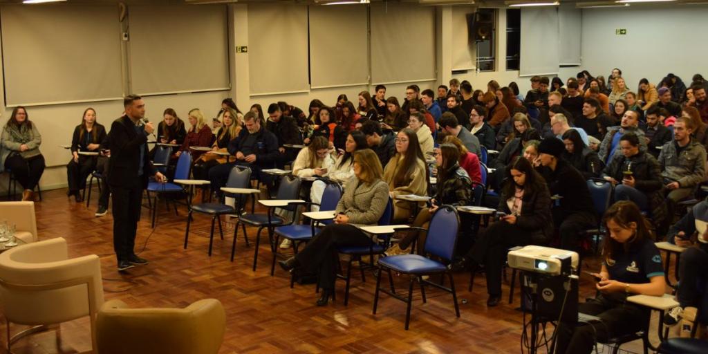 A interação com o público foi um dos pontos altos do evento. Após a palestra, Lucas Silveira debateu o tema com a presidente da Visão Júnior, Isabele Portela de Oliveira, e com o representante discente, Francesco Dartora Mazocco, respondendo às perguntas da plateia.