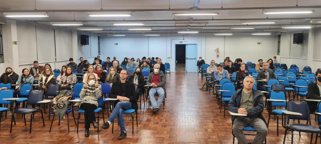 Após a palestra, o perito economista Gesiel da Silva Moura, egresso da UFSM (campus Palmeira das Missões) foi convidado a fazer parte da mesa oficial e discorrer sobre os aspectos relacionados ao início da atividade como perito e a importância da Comissão de Auditoria, Avaliação e Perícias Econômico-Financeiras (CAAPE) junto ao Conselho Regional de Economia do Rio Grande do Sul (CORECON-RS). Neste momento, em um diálogo aberto e dinâmico, o Dr. Gustavo Bruschi e o Perito Economista Gesiel da Silva Moura tiraram diversas dúvidas dos docentes e discentes vinculados ao Curso de Graduação em Ciências Econômicas.