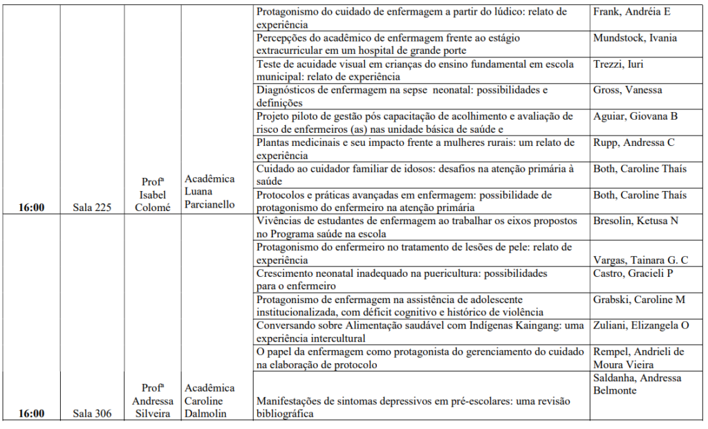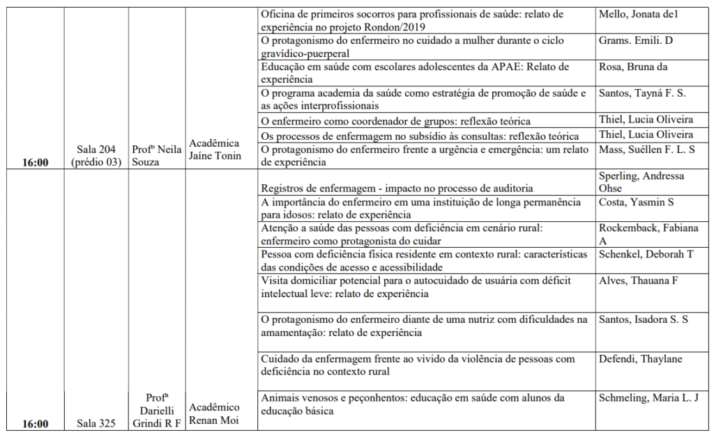 período das 16:00 às 17:00 nas salas discriminadas no Quadro Abaixo.