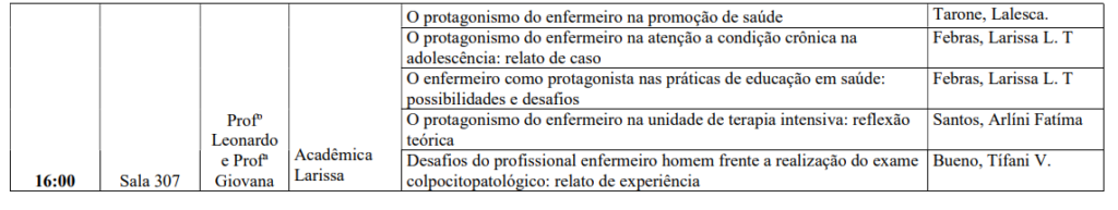 Colaboração: Renan Moi – Bolsista da Coordenação do Curso de Enfermagem