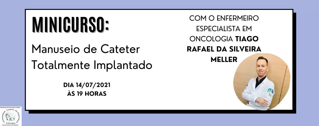O minicurso ocorrerá no dia 14 de julho de 2021, as 19 horas e será transmitido pelo Even3 e canal do PET Enfermagem UFSM/PM no YouTube.