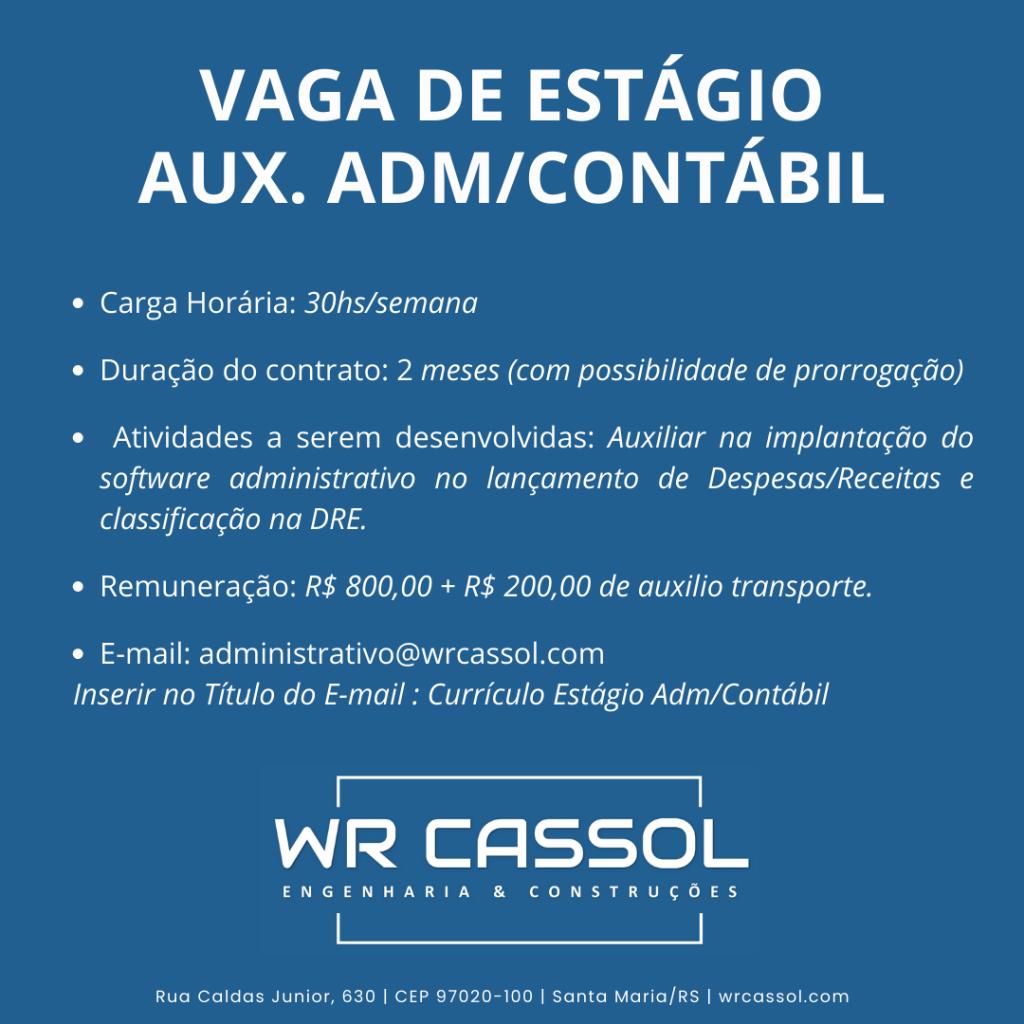 Vaga para Estágio na WR Cassol Engenharia – Adm/Contábil