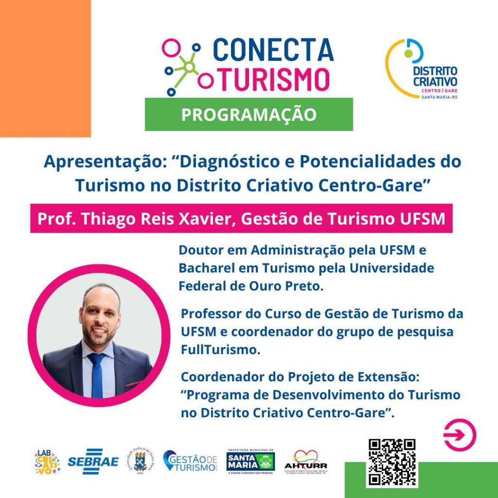 O Conecta Turismo é um evento promovido pelo Curso de Gestão de Turismo da UFSM, LabCriativo, Sebrae e Prefeitura Municipal de Santa Maria