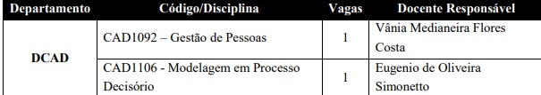 Duas vagas para o Departamento de Ciências Administrativas