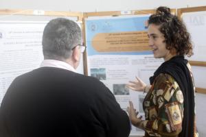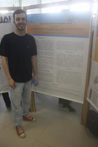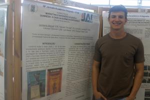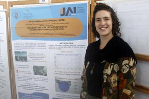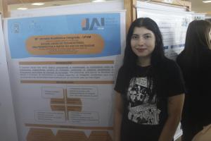 No saguão do Centro de Convenções, a acadêmica de Administração Isabella da Luz Grotto apresentou o seu trabalho “Mudanças climáticas e resiliência urbana: uma análise da produção científica”, tendo como avaliador o professor Gilnei Luiz de Moura, do Departamento de Ciências Administrativas da UFSM.