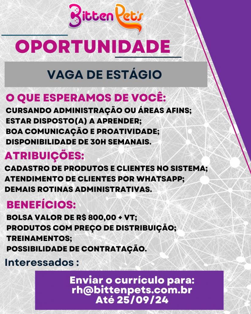 . E-mail para os interessados entrarem em contato: rh@bittenpets.com.br