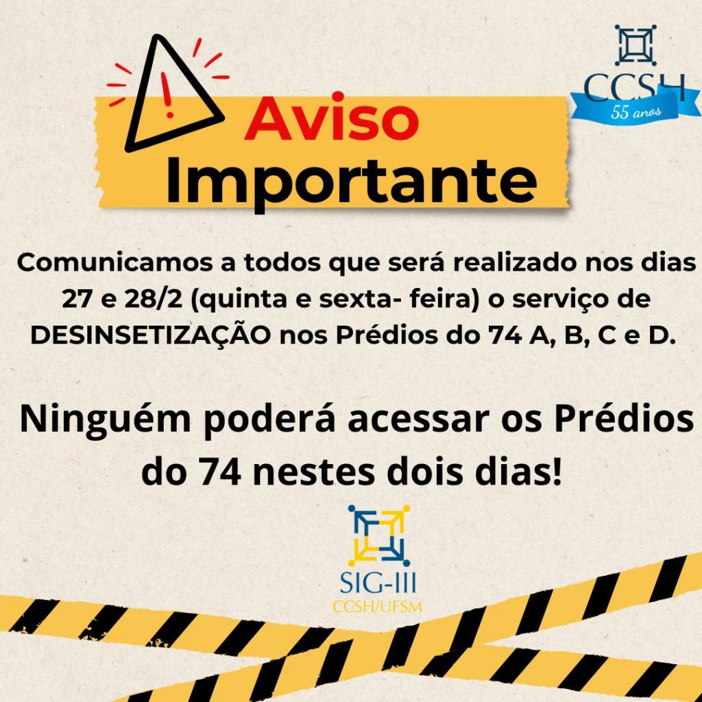 ⚠ Prédios do CCSH serão desinsetizados nos dias 27 e 28 de fevereiro