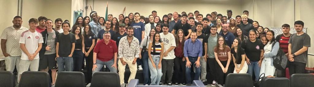 Na última quarta-feira, 18 de março de 2026, o Curso de Administração Diurno da Universidade Federal de Santa Maria (UFSM) realizou sua Aula Inaugural do 1º semestre letivo. Com o tema “Carreira e Oportunidades na área da Administração”, o evento foi promovido pelo Curso de Graduação em Administração, com apoio do Departamento de Ciências Administrativas e do Centro de Ciências Sociais e Humanas da UFSM e organizada pelo Prof. Marcelo Trevisan.