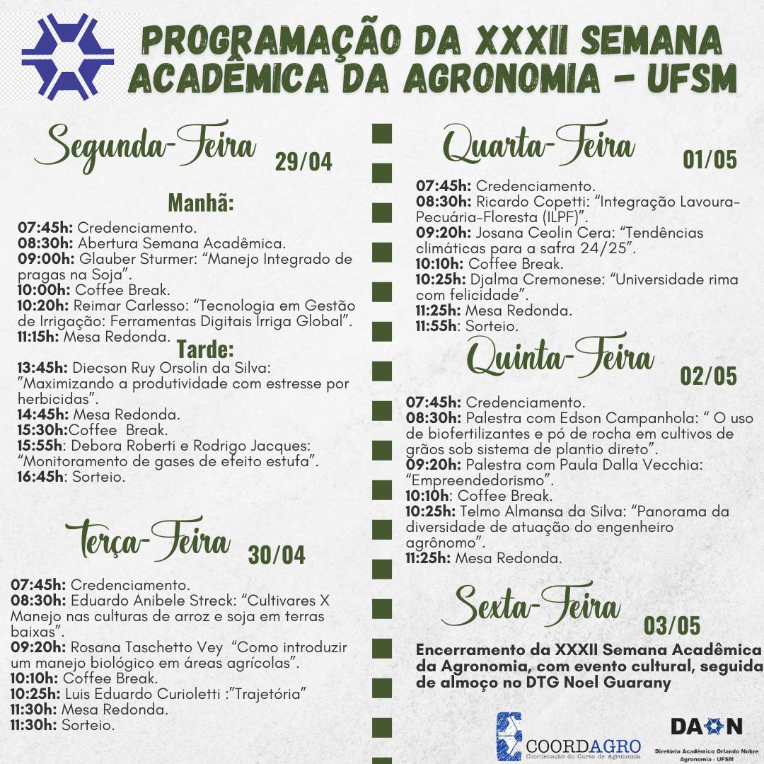 Divulgação da Programação da XXXII Semana Acadêmica da Agronomia – UFSM